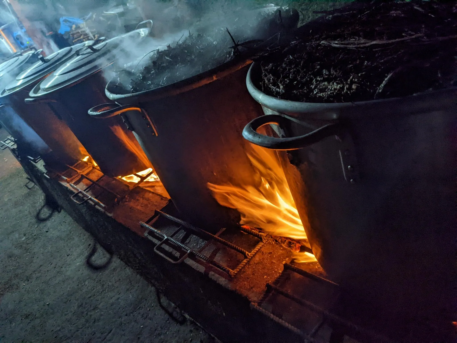 These plants are grown and sourced from the Amazon. After maturing under the sun in their natural habitat the plants are harvested and brewed using a traditional Peruvian method. This process takes multiple days to extract the plants in 30 gallon pots over a wood-burning fire, stirred by hand with intention and love!